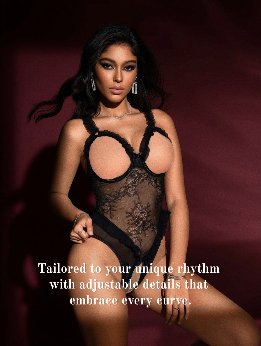 Dripdrip Noir-Lace: Sophisticated Sheer Lace Strappy Lingerie Set