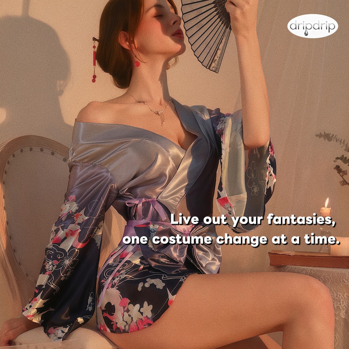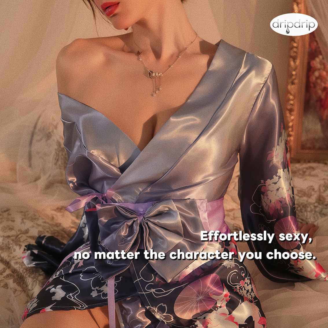 Dripdrip Japanese Fox Dream Purple Floral Kimono Robe