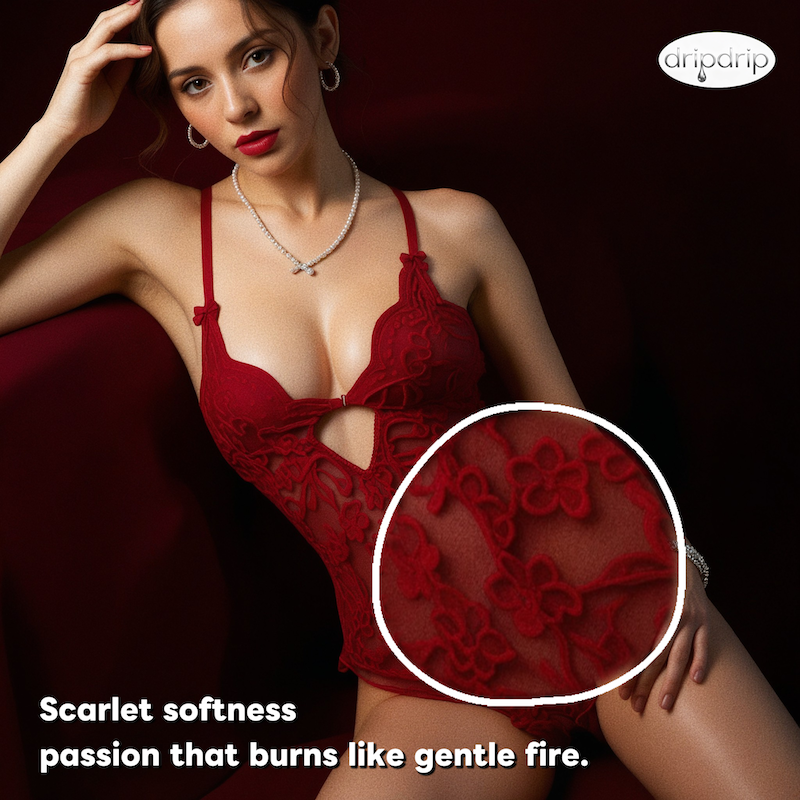 Dripdrip Lace Sheer Open-Crotch Bodysuit