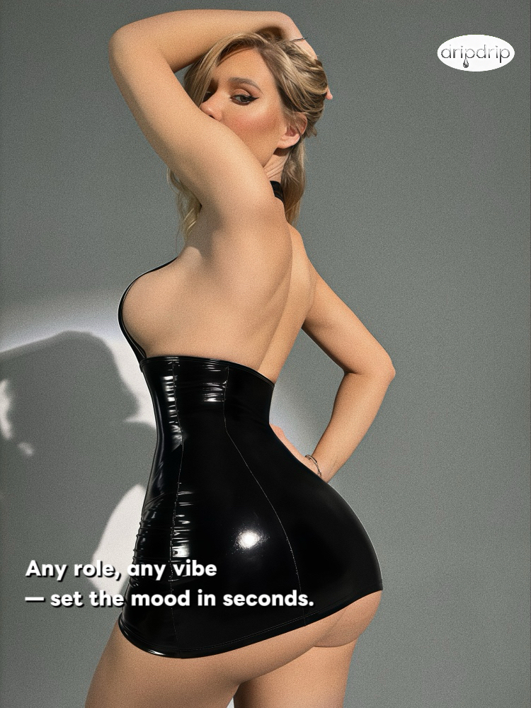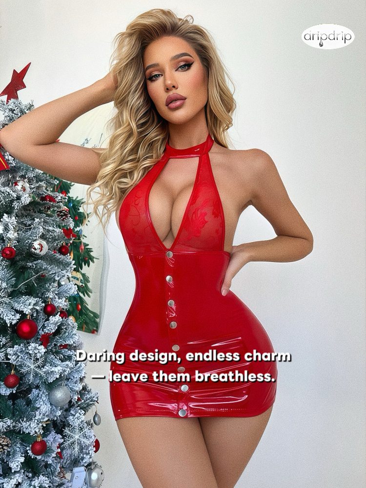 Dripdrip Leather Mirror Finish Catsuit Uniform Dress