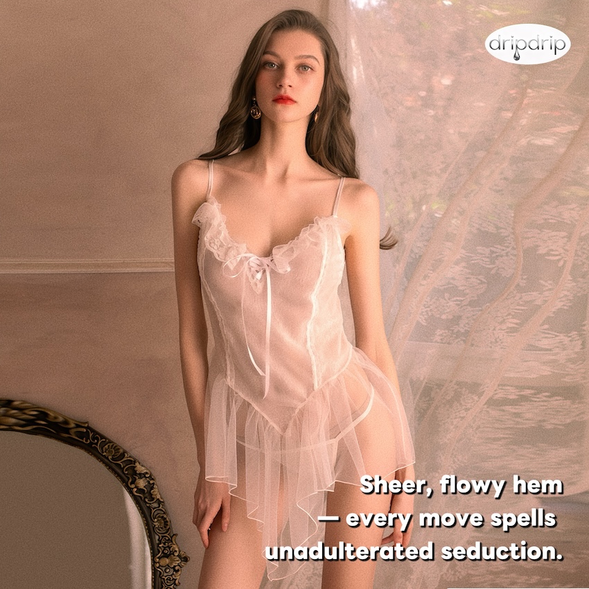 Dripdrip Sheer Lace Uniform Suspender Chemise Loungewear Set