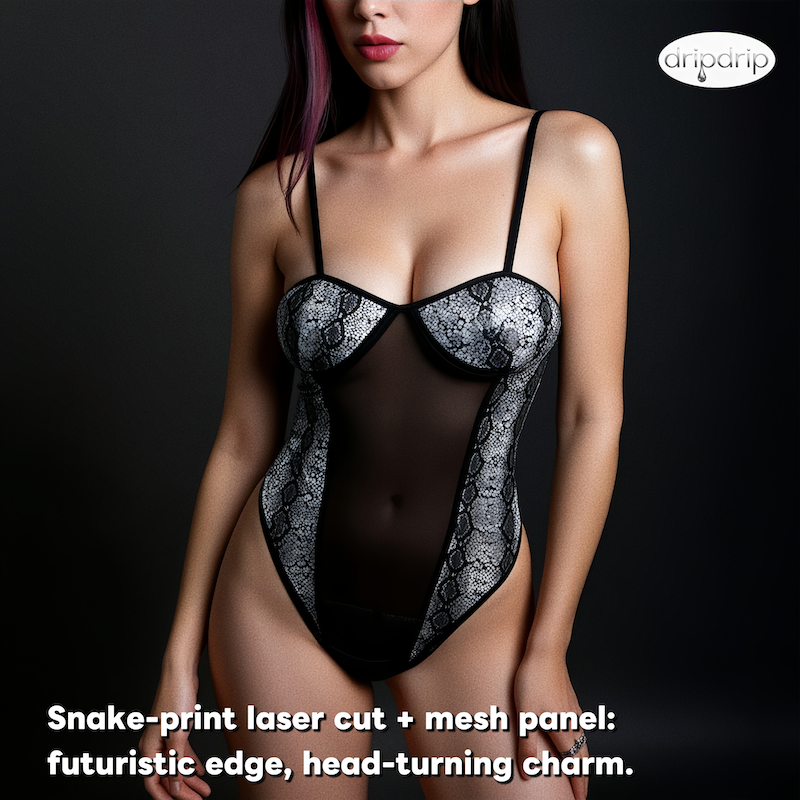 Dripdrip Snakeskin Patent Leather Suspender Tights