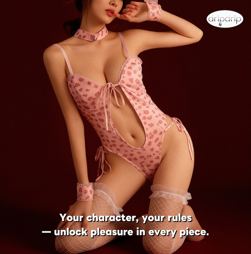 Dripdrip Pink Leopard Print Bunny Girl Roleplay Set