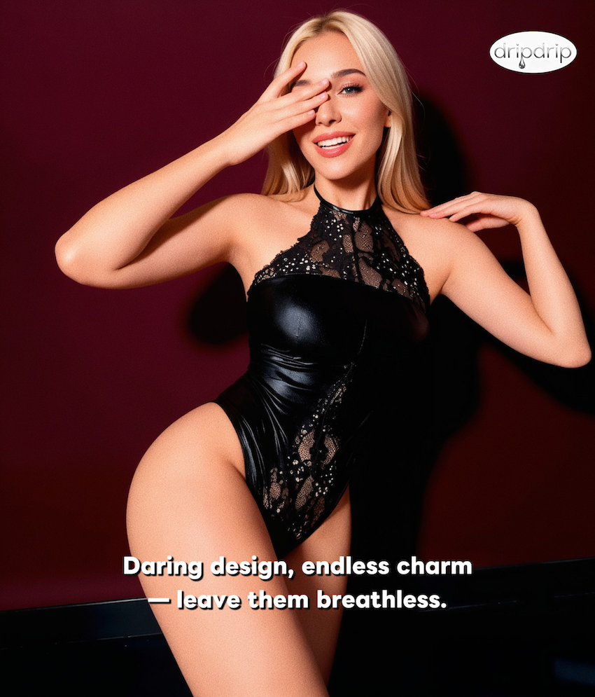 Dripdrip PU Gathered Push-Up Bunny Roleplay Bodysuit Set