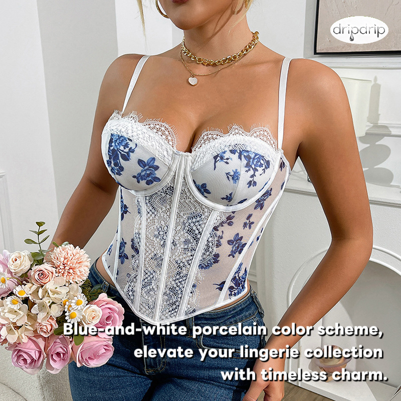 Dripdrip Lace Boned Outerwear Corset Bustier