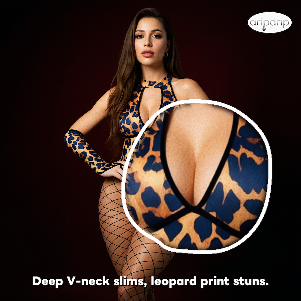 Dripdrip Leopard Fishnet Hollow Bodysuit Set